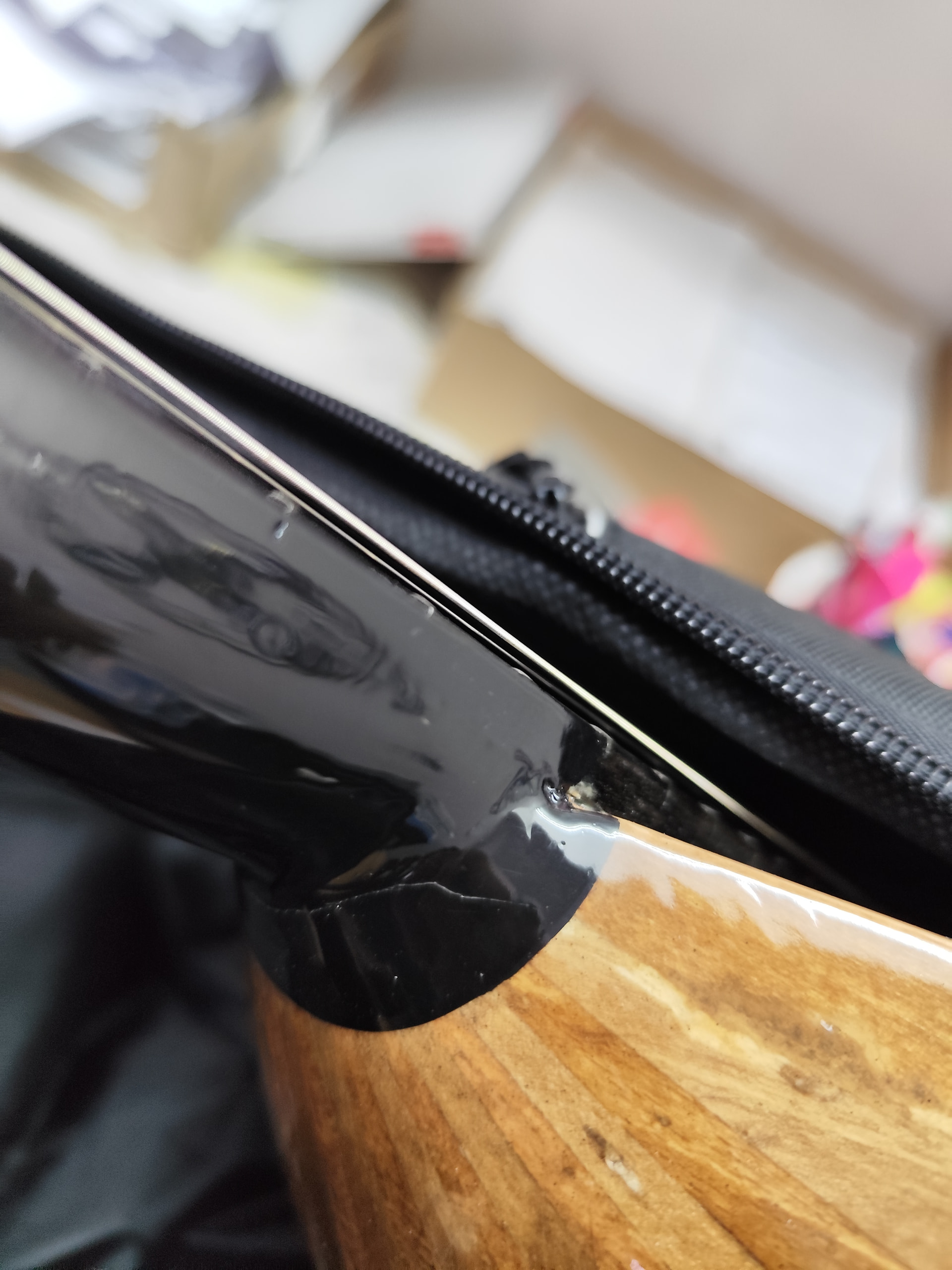 Για να απαντησω στην ερώτηση σου: συχνά κάποια βερνίκια μπορεί να μαζέψουν λίγο και επίσης συχνά προκύπτει συρρύκνωση στα ξύλα ειδικά όταν χρησιμοποιούνται κόλλες αφήνουν υγρασία στα ξύλα η οποία σταδιακά αποβάλλεται. Σε τέτοιες περιπτωσεις μπορει να εμφανιστεί ένα χνάρι σε μια ένωση, όταν τελικά κουρδιστεί και πάρει τάσεις το όργανο.Στο δικό μου μάλλον κάτι τέτοιο έγινε. Αυτό δεν είναι πρόβλημα απο μόνο του.Πρόβλημα είναι να προκύψει αστοχία και ο κατασκευαστής να μη μερινήσει να την διορθωσει.Αυτό το σπασμένο τηλέφωνο εδώ δεν κάνει καλό σε κανέναν.