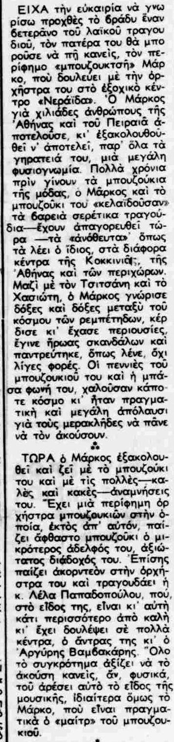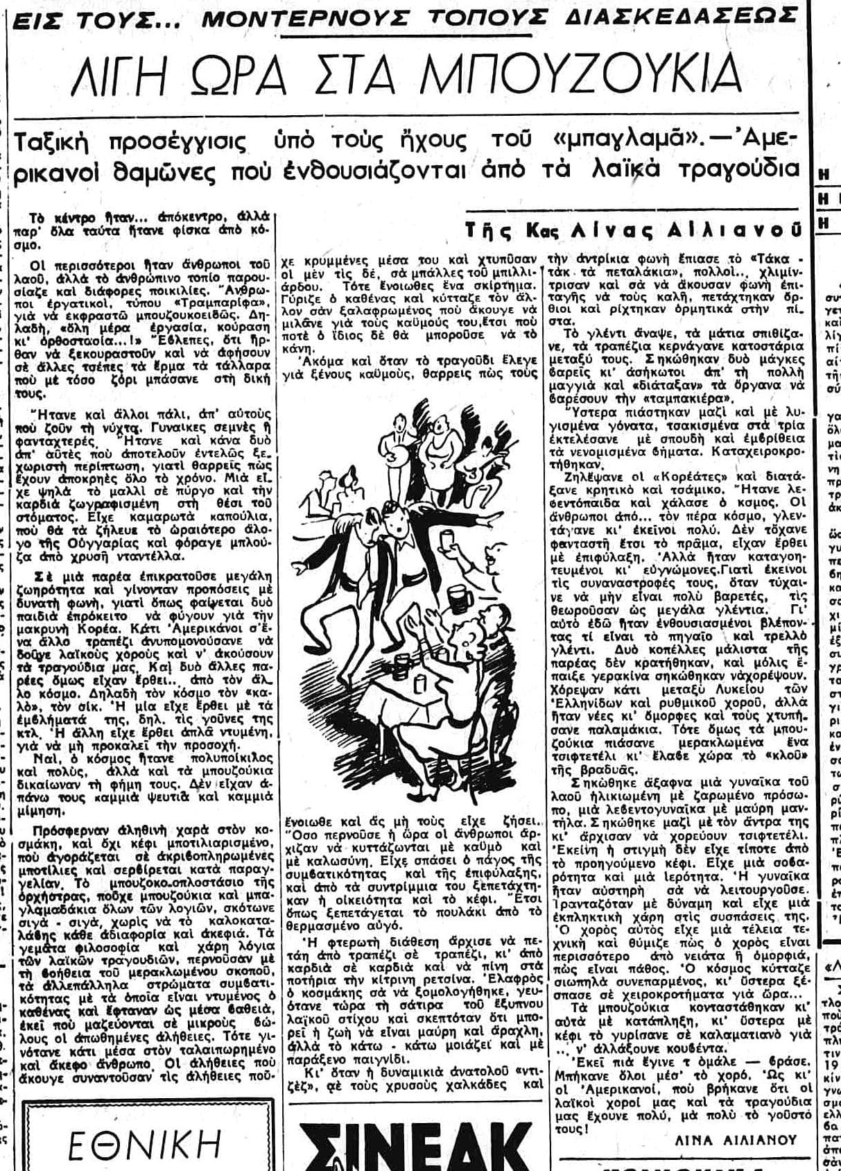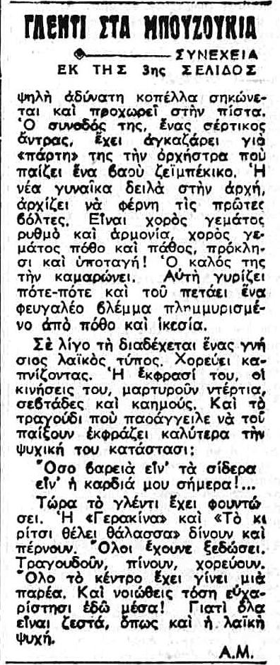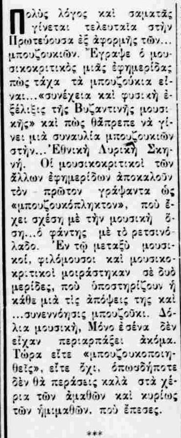 Εκτός του κυρίως θέματος, αλλά παρατηρώ ότι το '51 έλεγαν ήδη «συνεννόησις μπουζούκι», που το είχα για πολύ-πολύ πιο πρόσφατο.