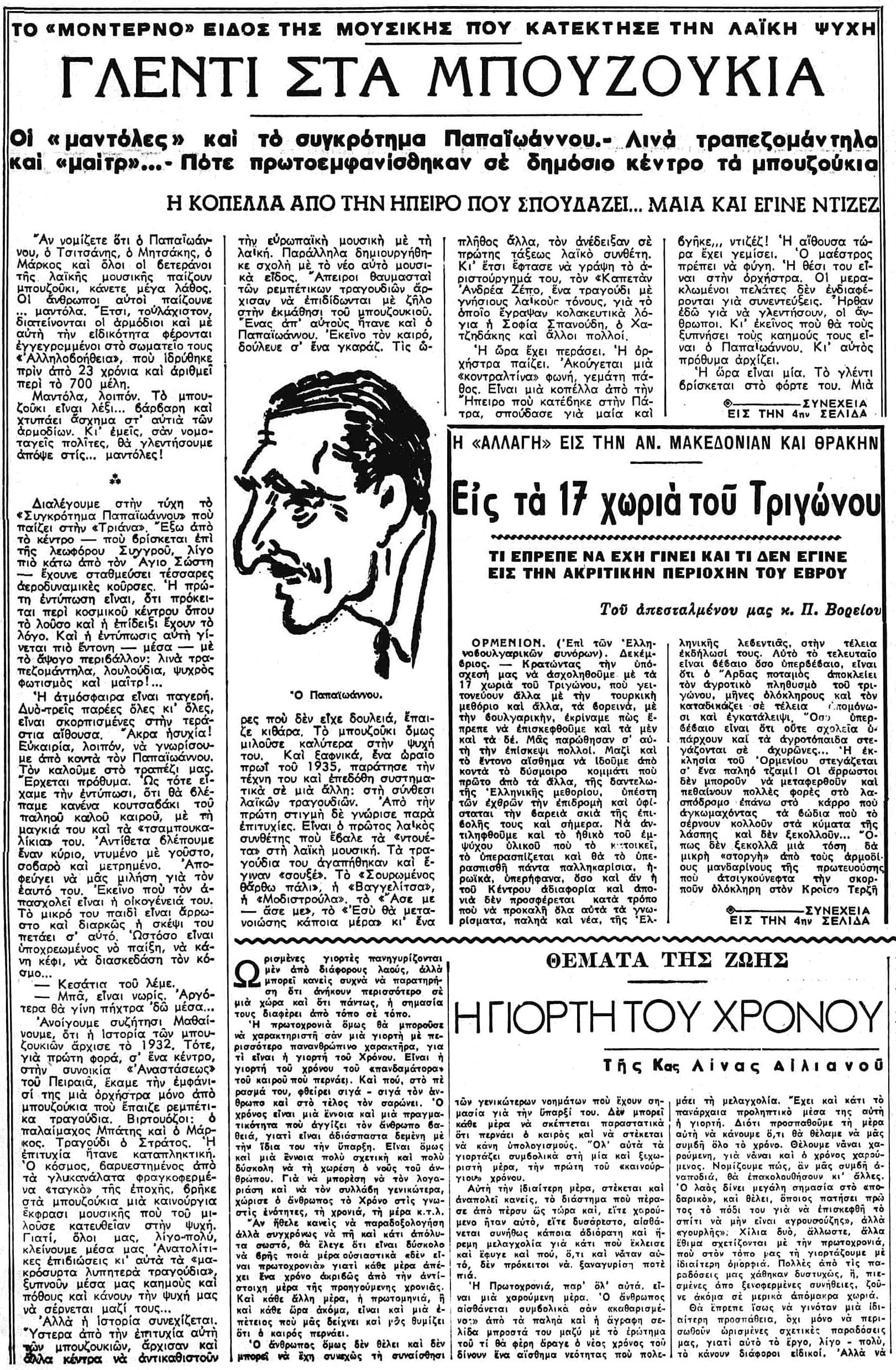Πολύτιμο ρεπορτάζ από την ΤΡΙΑΝΑ το 1951 με Παπαϊωάννου (και σκίτσο του!)