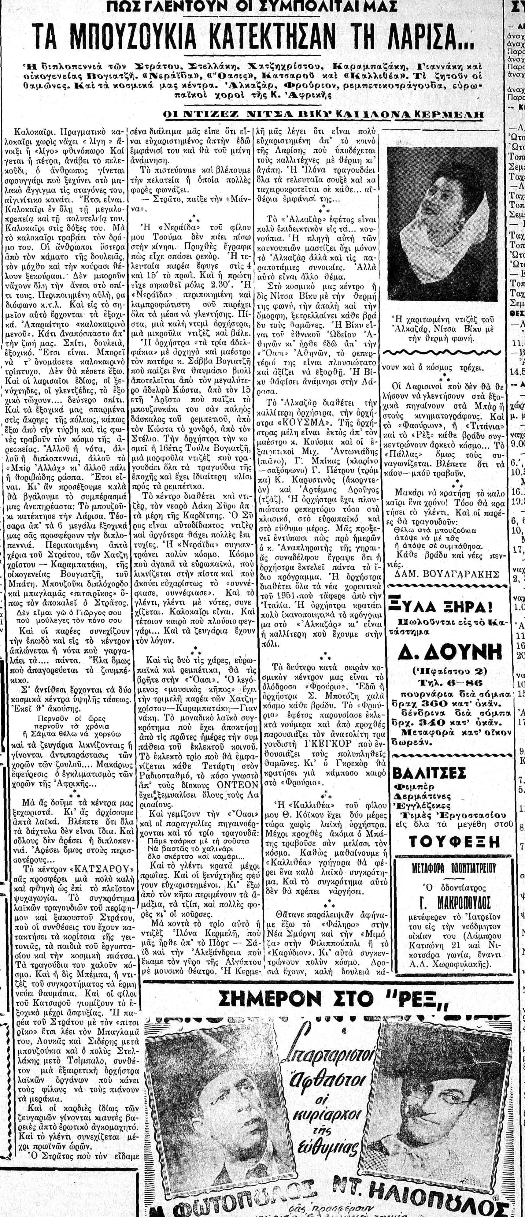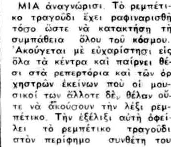 Στη λαρισινή εφημερίδα ΕΛΕΥΘΕΡΙΑ (13/7/1951) διαβάζουμε ενδιαφέροντα πράγματα για τον Τσιτσάνη επί Κατοχής, που δεν τα γνώριζα