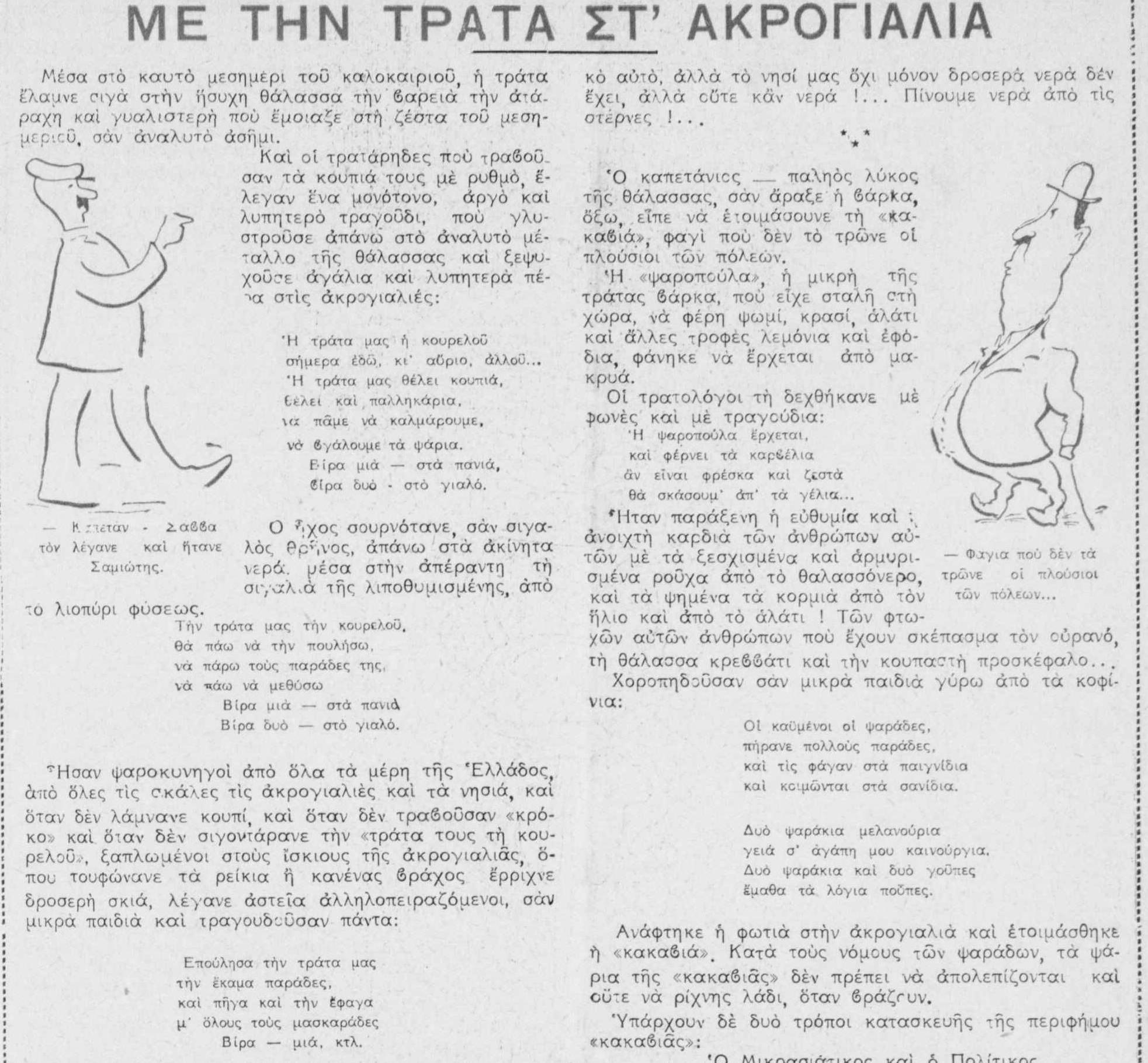 «Η τράτα μας [ … ] να πάμε να καλμάρουμε …».