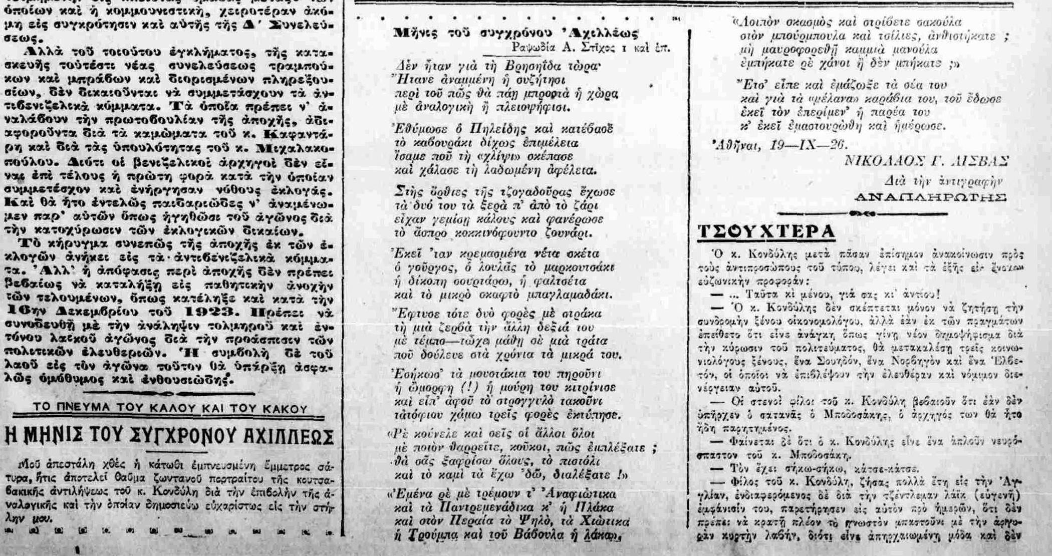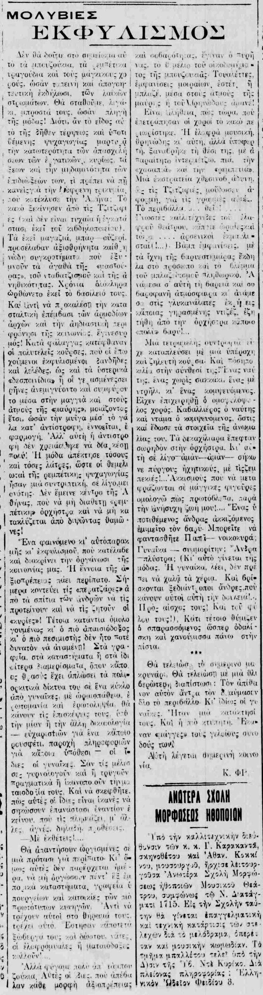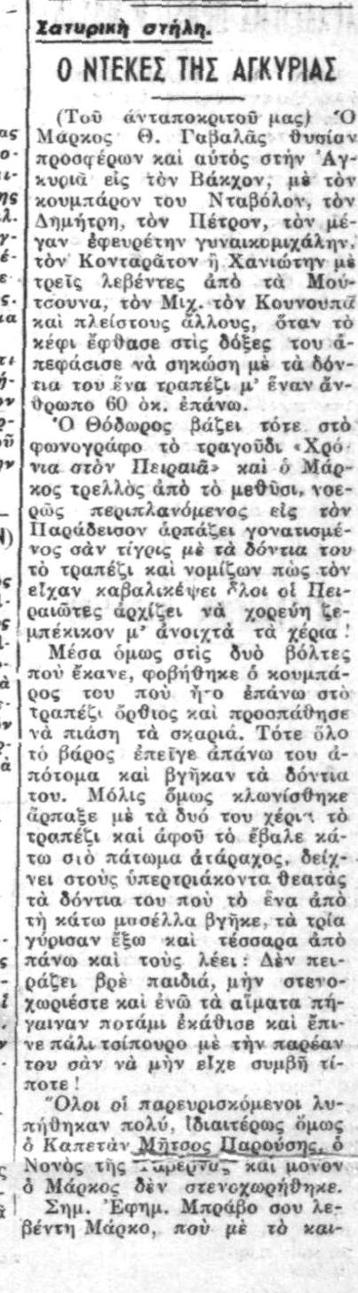 Εξαιρετική μαγκικοραψωδιακή σάτιρα του Κονδύλη (ΑΘΗΝΑΪΚΗ 21/2/1926)