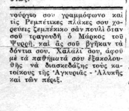 Ρεπορτάζ του 1945 από το πειραϊκό λιμάνι: Γιαχνί Σοκάκι και ρεμπέτικα άσματα (“Πολισμάνοι μας τραβάνε/και για το Δεύτερο μας πάνε”) (ΑΣΥΡΜΑΤΟΣ 30/11/1945)