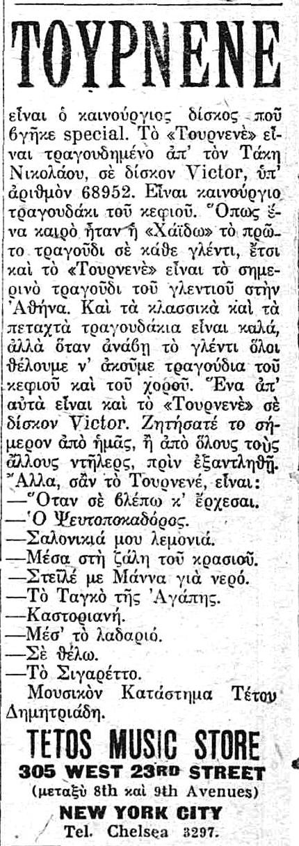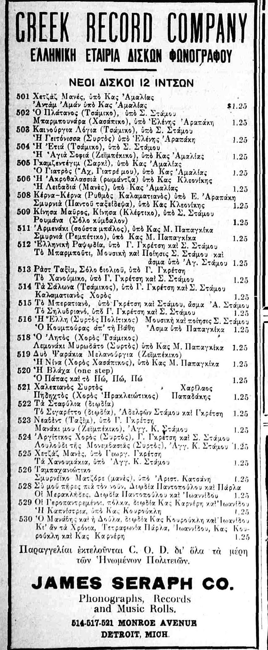 Τα περίφημα άσματα «Η χήρα», «Ο Μαίμος» και άλλα της αρίστης περιπαθείας