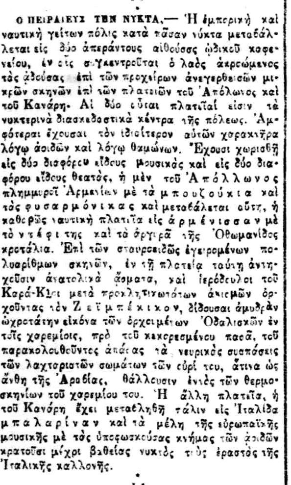 Την εποχή του άρθρου, πλατεία Απόλλωνος ονομαζόταν η πλατεία Καραϊσκάκη