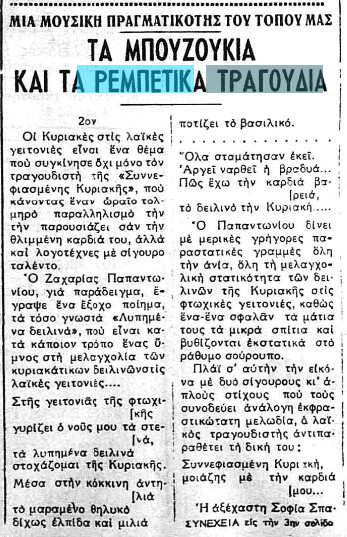 Ενδιαφέρουσα ρεκλάμα με σπάνια φωτό της Θέκλας Λαζαρίδου, που εμφανίστηκε στο Λόντον Μπαρ των Χανίων με την ορχήστρα του Δραγάτση (ΚΗΡΥΞ 19/8/1953)