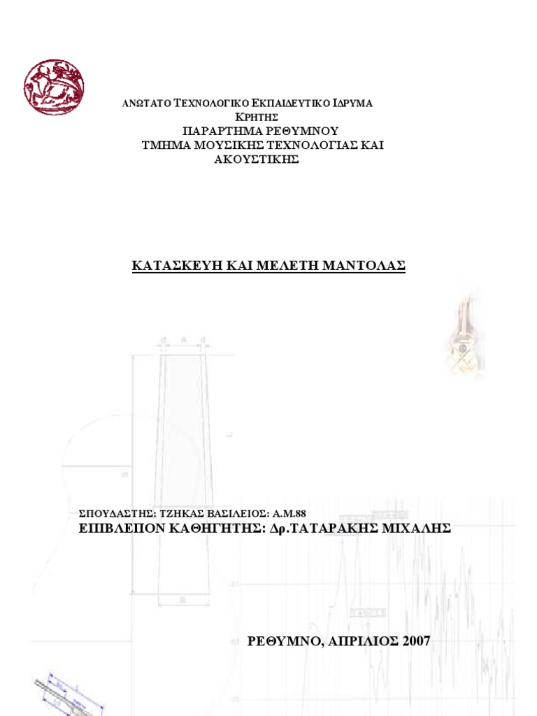 Ίσως να το ξέρετε, αλλά κάποιοι μπορεί και να βοηθηθούν… Από το “ΤΕΙ Κρήτης Τμήμα Μουσικής Τεχνολογίας και Ακουστικής”, με αφορμή την κατασκευή μαντόλας, πάρα πολλές και λεπτομερείς πληροφορίες για την κατασκευή ενός οργάνου.