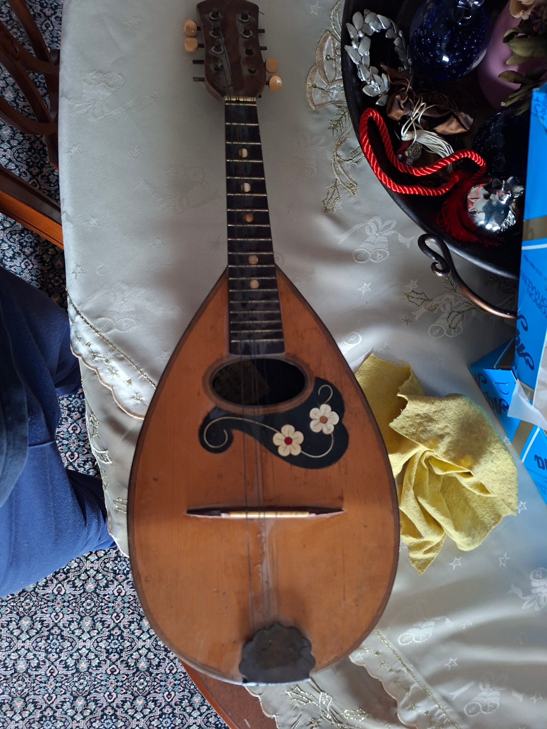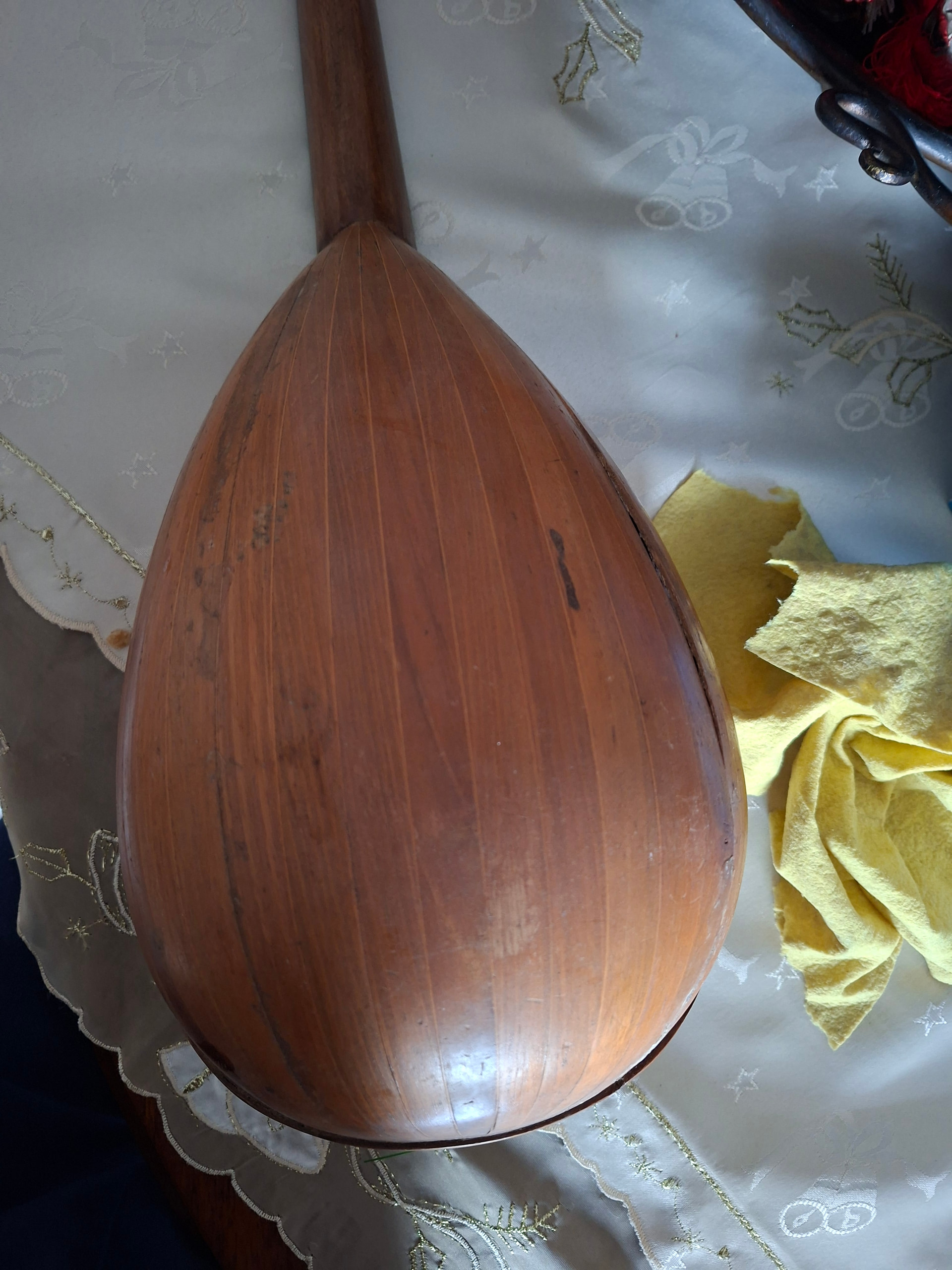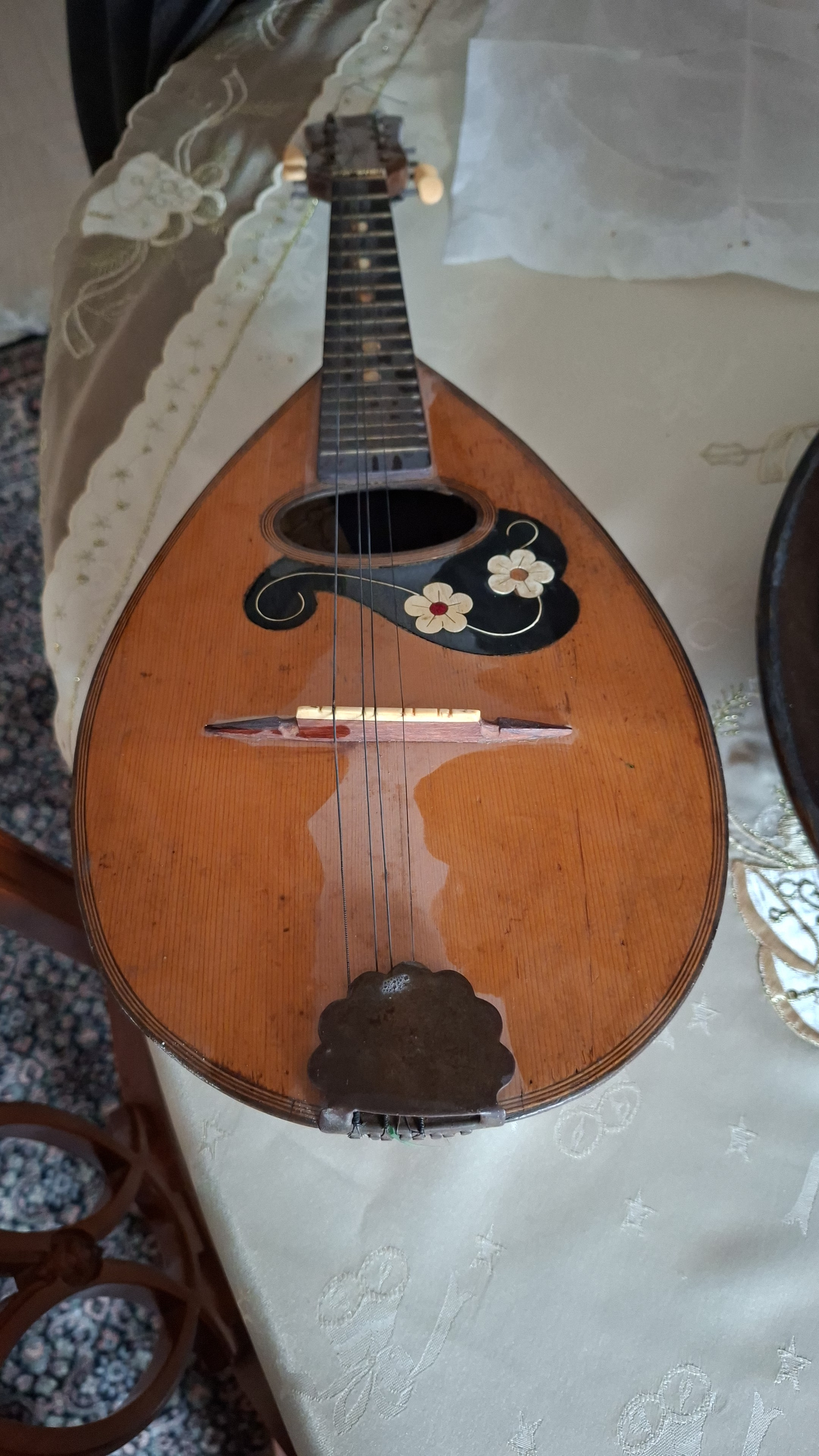 Πρέπει να γνωριζεις τα εξής: Τα περισσότερα μαντολινα κατασκευασμένα γύρω στις αρχές του 1900 ειναι μαζικής παραγωγης και απευθύνονται κυρίως σε ερασιτέχνες. Πολλά απο αυτά δεν είχαν κλίμακα κομμένη με απόλυτη ακρίβεια και το ύψος των χορδών συχνά ήταν ψηλότερο του αποδεκτού σήμερα. Πέρα απο την συναισθηματική αξία λοιπόν, να γνωρίζεις οτι μουσικά και χρηματικά η αξία τους είναι περιορισμένη.Θα μπορούσες φυσικά να ρίξεις πολλά χρήματα επάνω του και να το κάνεις να παίζει όσο καλυτερα γίνεται αλλά ίσως ειναι δύσκολο να δικαιολογηθεί τέτοια επένδυση. Με άλλα λόγια οτι χρήματα ρίξεις να ξέρεις οτι δεν θα τα δεις σε πιθανη μεταπώληση.