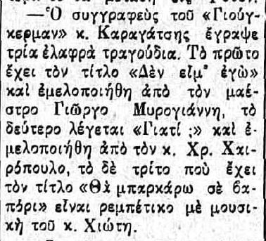 Τι χρονιά είναι το δημοσίευμα; Υπήρξε εποχή που να δραστηριοποιούνται κι άλλοι συνθέτες με το όνομα Χιώτης; Υπάρχει και η λέξη «ελαφρό»…