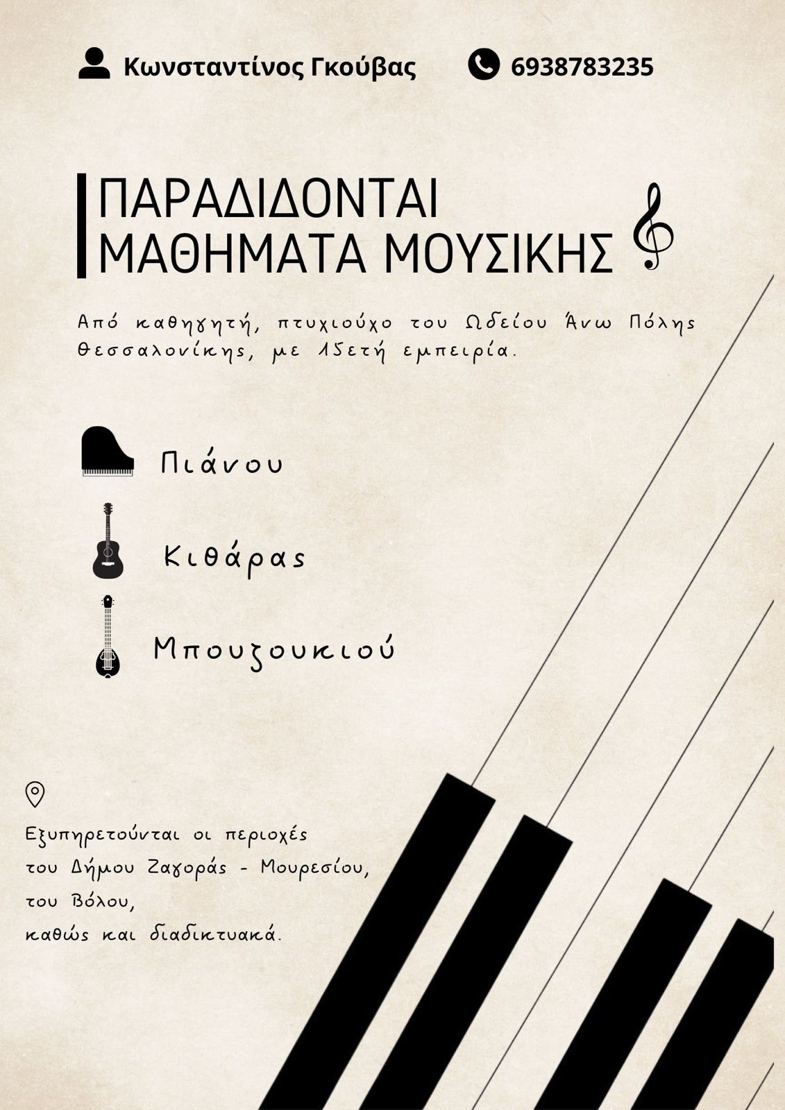 Αναζητώ δάσκαλο στο τρίχορδο μπουζούκι στην περιοχή του Βόλου. Αν γνωρίζετε κάποιον πείτε μου!