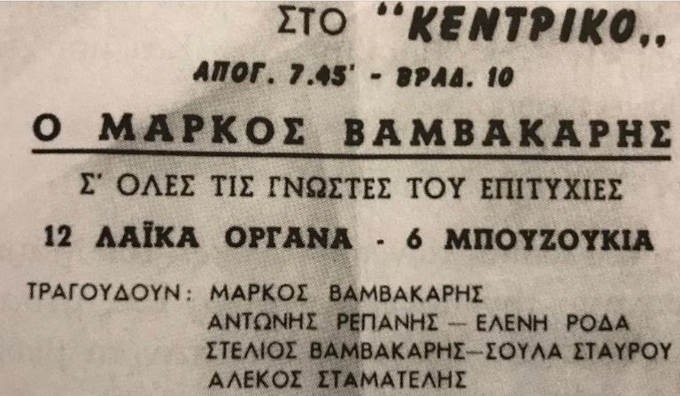 Αφίσα με τη συναυλία του Μάρκου στο “Κεντρικόν”.