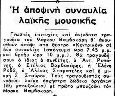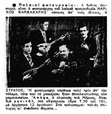 Περικλή μου, μην ξεχνάμε κάποια πράγματα: την εποχή εκείνη οι αστοί, οι οποίοι έγραφαν και διάβαζαν τις εφημερίδες, στην πλειοψηφία τους δεν ήξεραν τί είναι ρεμπέτικο και ονόματα όπως Μάρκος Βαμβακάρης τους ήταν αν όχι ακριβώς άγνωστα, σχεδόν αδιάφορα. Ακόμα πιο άγνωστα ήταν τα ονόματα αυτά στους αρχισυντάκτες των εφημερίδων (για τους “άλλους δύο” (Μπάτης, Δελιάς), ας μη μιλήσουμε καν!…). Εντάξει, κάποιες φορές, όχι πολλές όμως, το έφερνε η περίπτωση να ασχοληθούν εφημερίδες με το μουσικό αυτό είδος και τους εκπροσώπους του, αλλά μέχρις εκεί. Μέηνστρήμ δεν ήταν για το κοινό τους…