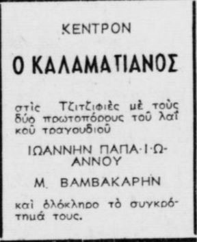 Τα εγκαίνια της «Τριάνας» με Παπαϊωάννου-Νίνου-Χιώτη έγιναν την 1/5/1952.
