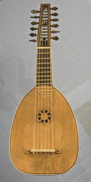 Λομβαρδία είναι η περιοχή του Μιλάνου. Αχρονολόγητο στη Βίκη. Με την ίδια ονομασία κι ένα πολύ πιο σύγχρονο, που απλώς διατηρεί τον ίδιο αριθμό χορδών (έξι διπλές), ενώ κατά τα άλλα έχει κολλητό καβαλάρη, ταστιέρα με τάστα, κεφαλή με κλειδιά σύγχρονου τύπου και ίσως, αν βλέπω καλά και δεν αυθυποβάλλομαι, και τσακιστό καπάκι: