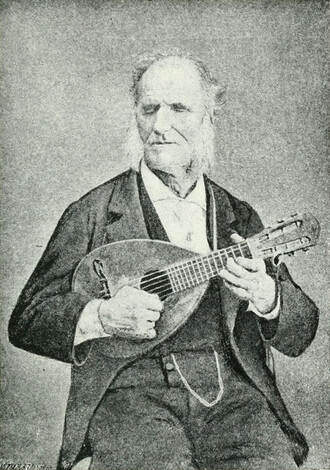 Giovanni Vailati, “Blind mandolinist of Cremona”, toured Europe in the 1850s with a six-string Lombard mandolin.