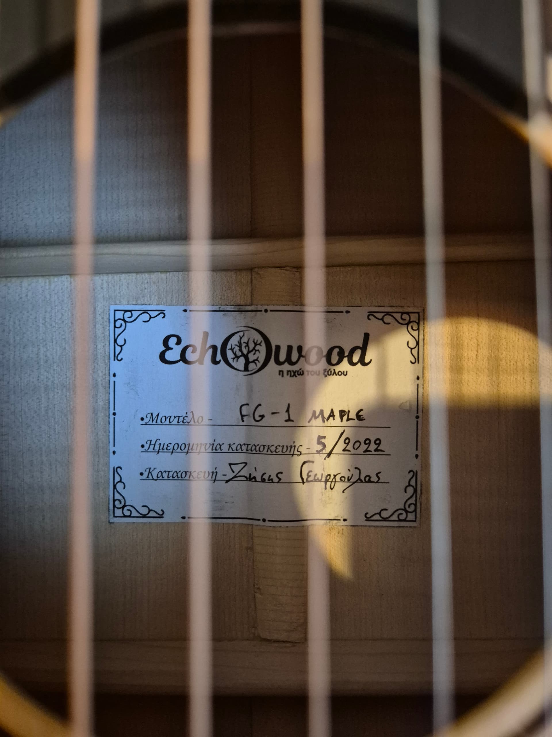 Κατασκευαστής: Ζήσης Γεωργούλας, οργανοποιείο Echowood. Η κιθάρα είναι χειροποίητη, κατασκευάστηκε τον Μάιο του 2022 και είναι σε άριστη κατάσταση, χωρίς ζημιές. Πωλείται στην ανατολική Θεσσαλονίκη με δώρο μαλακή θήκη σε τιμή 800,00€ προς το παρόν ΜΗ συζητήσιμη. Ηχητικό δείγμα διαθέσιμο για όσους ενδιαφέρονται.