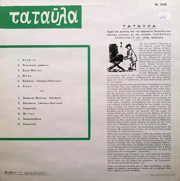 Μιας και ανακινήθηκε αυτομάτως, ένας δίσκος που θεωρείται ότι έχει αυθεντική πολίτικη μουσική, και ειδικότερα ταταυλιανή - σύμφωνα με το κείμενο του οπισθοφύλλου η συνοικία αυτή είχε ιδιαίτερη δική της μουσική παράδοση.