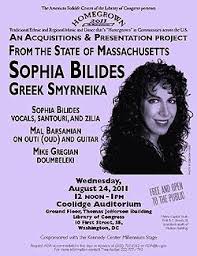 Συναυλία-παρουσίαση της σμυρναίικης παράδοσης στη Βιβλιοθήκη του Κογκρέσου από τη Σοφία Μπιλίδη, ελληνοϊταλικής καταγωγής Αμερικανίδα, απόγονο Μικρασιατών προσφύγων.