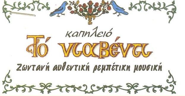 Καλησπέρα σε όλους τους φίλους του ρεμπέτικου.Θα ήθελα να πώ οτι εδώ στη θεσσαλονίκη, θα πρέπει όλοι να στηρίξουμε τα στέκια του ρεμπέτικου.Προτείνω λοιπόν ανεπιφύλακτα ΤΟ ΝΙΑΒΕΝΤΙ, (269-930, Ολυμπιάδος 82) που μαζί με την Πριγκιπέσσα & Τομπουρλίκα σχηματίζουν την τριπλέτα του καλού ρεμπέτικου στη θεσσαλονίκη.