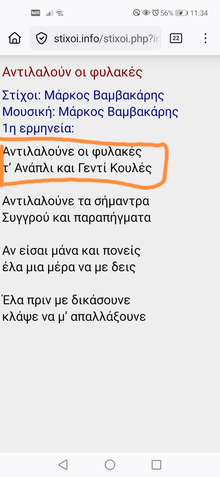 Το σκεπτικό του @emc , αντίθετα, το βρίσκω πιο βάσιμο: πριν το ‘12 είναι λογικό να μην έλεγαν Γεντί Κουλέ. Άρα θα έλεγαν Ιτς Καλέ. Δε βλέπω γιατί αυτό τους δεσμεύει να βάλουν και στο πρώτο μισό του στίχου υποχρεωτικά άλλη αναπλιώτικη φυλακή. Θεωρώ δεδομένο ότι ο στίχος είχε ελεύθερη μορφή, μπορούσαν να βάζουν διάφορα, παραμένει όμως το ερώτημα: συγκεκριμένα για «Ανάπλι» υπάρχει καμιά αξιόπιστη καταγραφή, παλιότερη από τις επανεκτελέσεις του τραγουδιού του Μάρκου;
