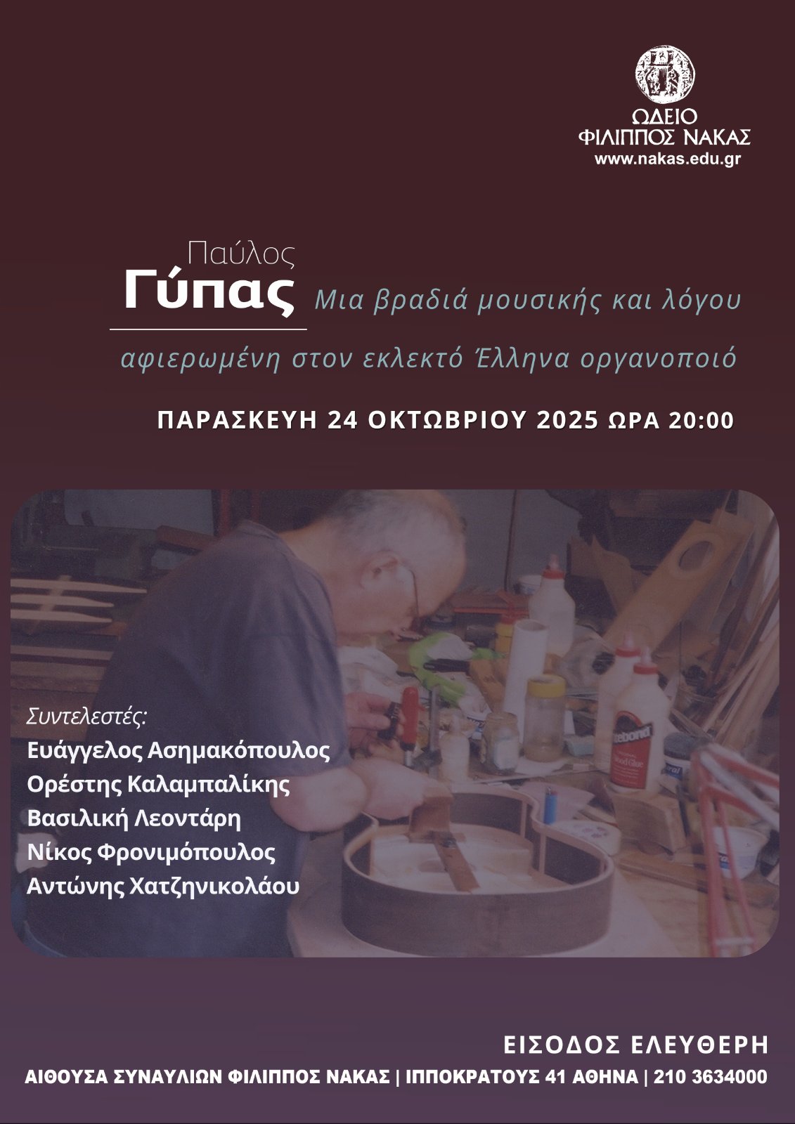 Παρασκευή 24-10-2025 στο Ωδείο Φίλιππος Νάκας, ώρα 20:00.