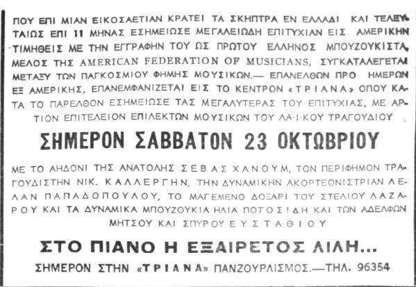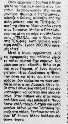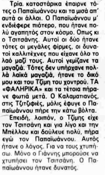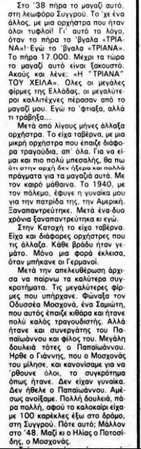 «[…] Το μαγαζί το είχε βγάλει “Παραμύθι” […] Τους έβαλα χέρι και αναγκάστηκε ο Χειλάς να πετάξει τις γυναίκες και να το κάνει μαγαζί κοσμικό και καλό, που το ξανάβγαλε “Τριάνα”»