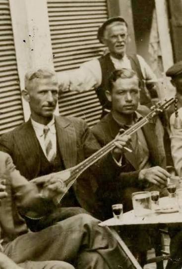 Οι προβληματισμοί μου λοιπόν αφορούν ένα φαινόμενο που όλοι μας θα γνωρίζουμε, αλλά συζητιέται πολύ σπάνια. Πιθανώς επειδή, σε πρώτη ανάγνωση, δε φαίνεται να έχει καμία σημασία. Παρόλαυτα, δεν έχει σταματήσει να μου διεγείρει το ενδιαφέρον μέσα από παρατήρηση παλιών φωτογραφιών (κυρίως σε παλιά πάλκα) ο τρόπος που αρκετοί παλαιότεροι παίκτες κρατούσαν το όργανο. Σε αντίθεση με τον επικρατέστερο τρόπο που ακολουθούμε σήμερα, που αφορά τη στήριξη του σώματος του μπουζουκιού στο δεξί πόδι (για δεξιόχειρες) και το μπράτσο του με κλίση προς τα επάνω, παρατηρείται ότι αρκετοί παλιοί παίκτες στήριζαν το όργανο με έναν τρόπο που μπορεί να χαρακτηριστεί πιο “οριζόντιος”, όσον αφορά τις κλίσεις και τις γωνίες του οργάνου. Παραθέτω κάποιες φωτογραφίες που περιλαμβάνουν τον Τσιτσάνη, τον Παπαϊωάννου, τον Αθανασίου, τον Μακρυδάκη, αλλά ακόμη και τον Στουραΐτη να αξιοποιούν τον συγκεκριμένο τρόπο κρατήματος:
