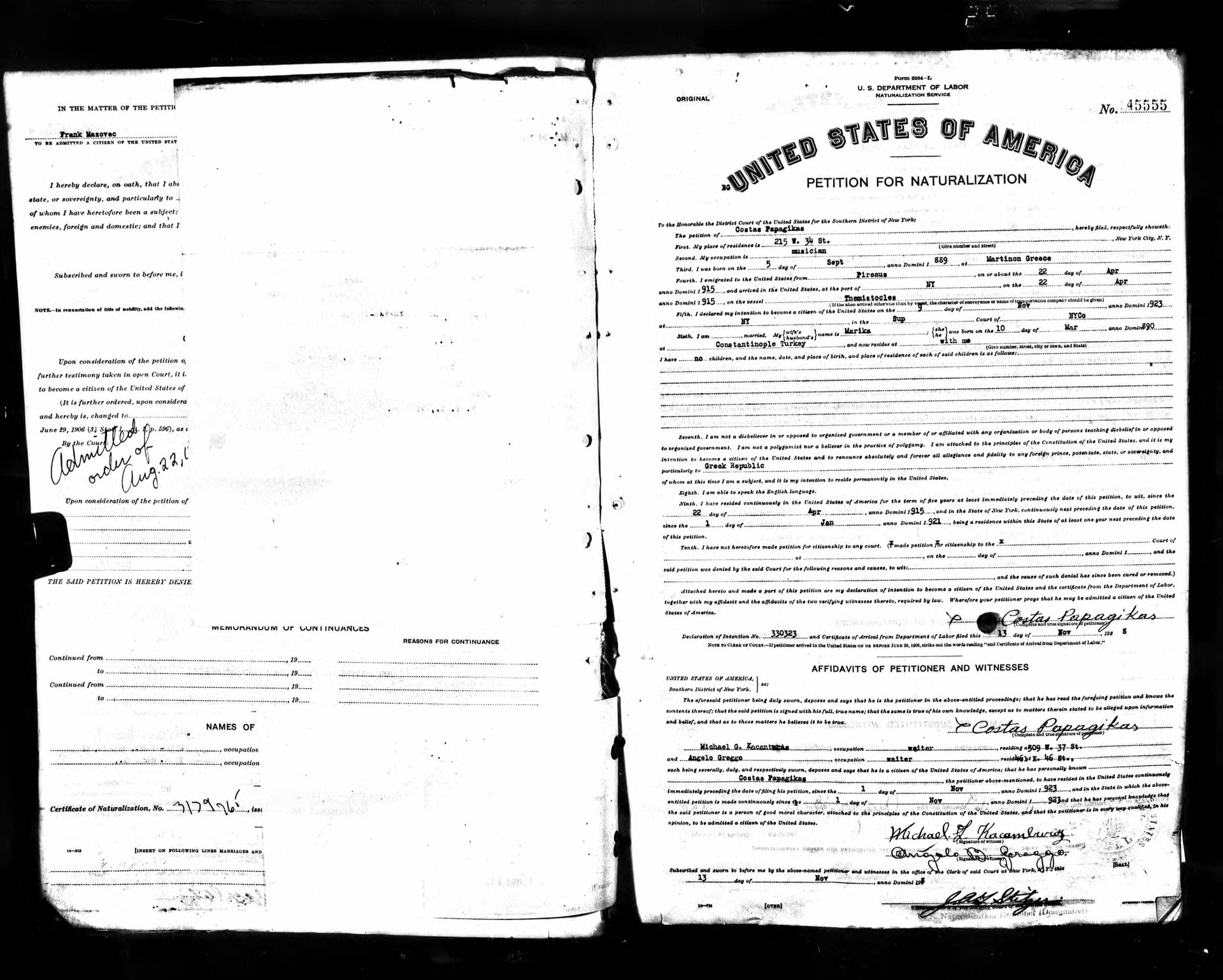 Και αναρωτιέμαι πως γίνεται; Άλλο ένα έγγραφο επιβίβασης που δεν έγινε και κάτι αν γίνει κανένα λάθος, και άλλο ένα έγγραφο για να αποκτήσουν Αμερικανική υπηκοότητα που είναι πολύ σοβαρό να μην γίνει κάποιο λάθος. Δεν ξέρω, χρειάζομαι τα φώτα σας σε αυτό.