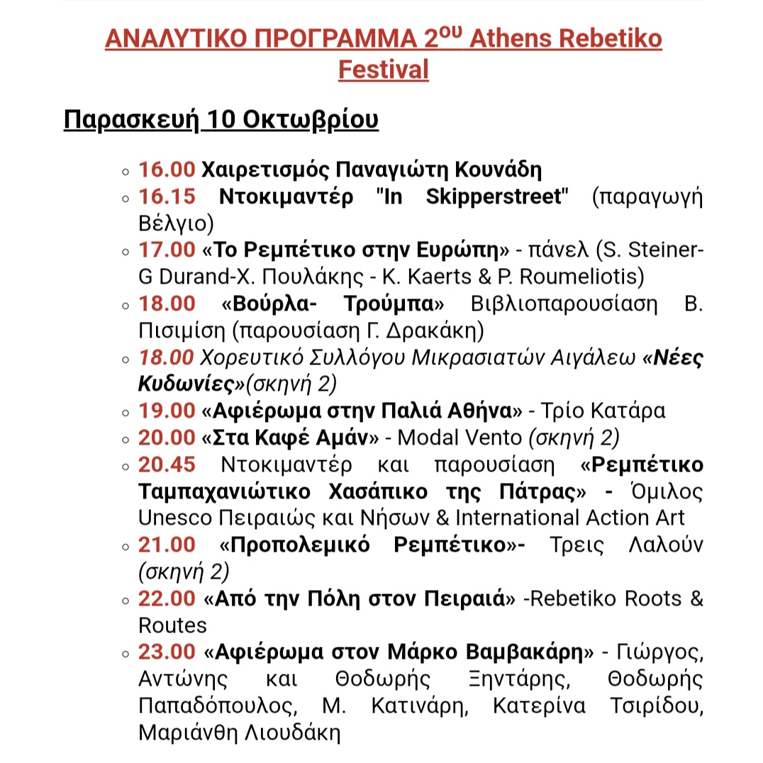 Ενδιαφέρουσα η ομιλία για το ρεμπέτικο στην Ευρώπη και το ντοκιμαντέρ επίσης.
